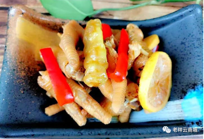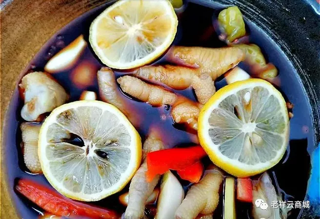 6、放入雞爪,再擠入檸檬汁,隨后再放入幾片檸檬片,攪勻后用保鮮膜包緊。低溫腌制8小時(shí),就可以了。